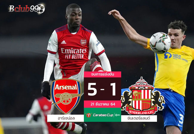 นาทีที่ 58 “ไอ้ปืนใหญ่” นำห่างเป็น 4-1 จากจังหวะที่ เปเป้ โชว์ทักษะ แตะบอลลอดขาผู้เล่น ซันเดอร์แลนด์ ก่อนผ่านบอลเข้ากลาง และเป็น เอ็นเคเทียห์ ที่โชว์เหนือต่อกระนั้นนาทีที่ 90+1 อาร์เซน่อล มาได้ประตู 5-1 จากความยอดเยี่ยมของ เปเป้ อีกครั้ง ที่หาจังหวะเปิดบอลเข้ากลางให้ ชาร์ลี พาทิโน่ ดาวรุ่งวัย 18 ปี ทิ้งตัวจิ้มบอลด้วยเท้าซ้ายเข้าไป