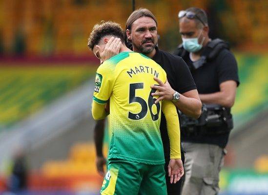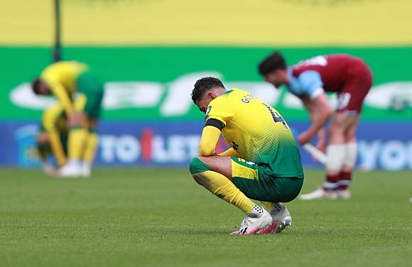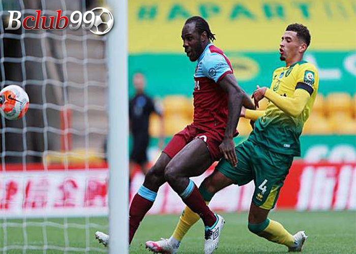 การแข่งขันฟุตบอลพรีเมียร์ลีก อังกฤษ ประจำวันที่ 11 กรกฏาคม 2563 ที่สนาม แคร์โรว โร้ด ระหว่าง นอริช ซิตี้ บ๊วยของตาราง พบ เวสต์แฮม ยูไนเต็ด ทีมอันดับ 16 ของตาราง